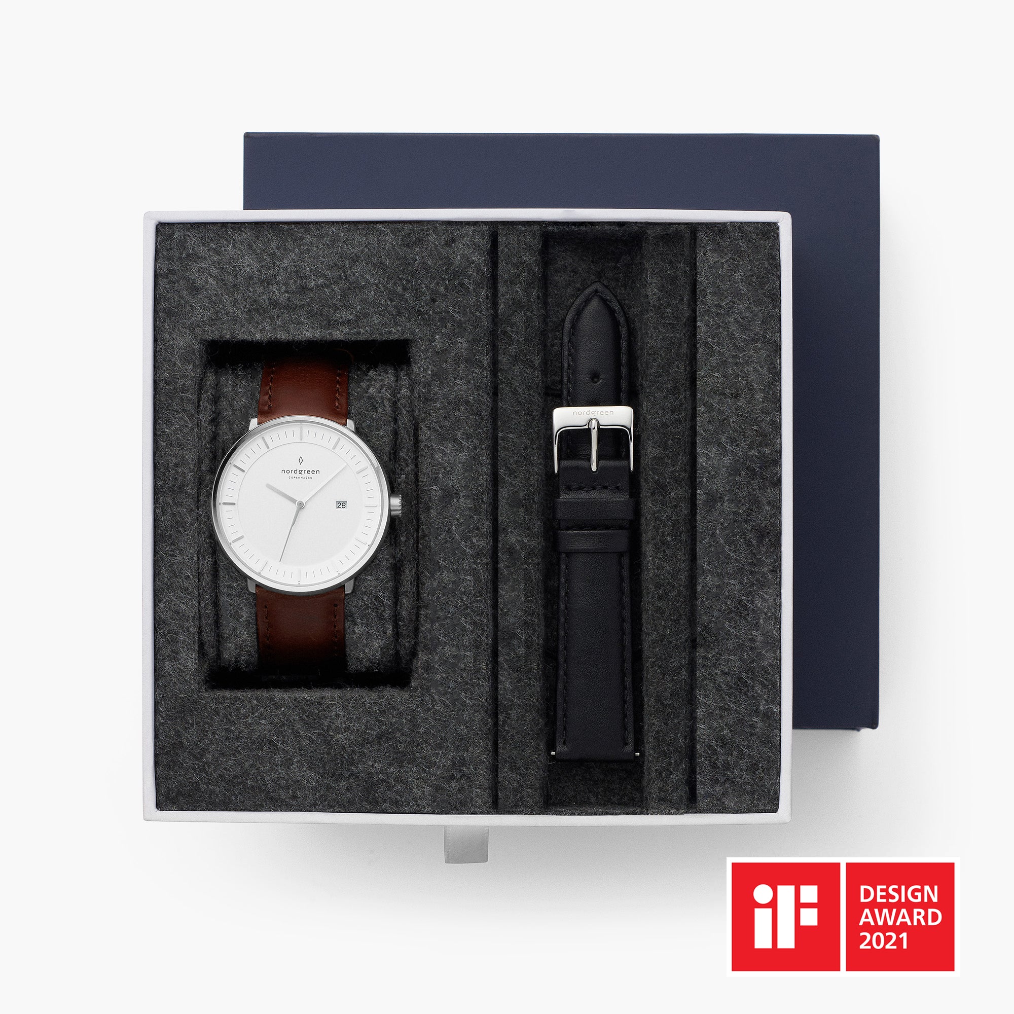 Unser Bestseller - die silberne Native mit braunem Lederband - begeistert mit einem Preis von weniger als 200 Euro. Die Uhr für Herren überzeugt mit ihrem schlichten Design und wird von denjenigen, die nach klassischen, stilvollen Accessoires ohne Details suchen, in den Warenkorb gelegt. Native ist mit einem abgerundeten Gehäuse versehen. Auf dem weißen Zifferblatt gibt es lediglich einen Stunden- und Minutenzeiger, der Sekundenzeiger fehlt. Das Modell ist für Männer mit einer Gehäusegröße von 32, 36 und 40 mm verfügbar. Die Variante mit 28 mm ist meistens aufgrund der Größe im Warenkorb von weiblichen Kunden zu finden. Wie auch bei den Uhren zuvor kann auch bei Native die Farbe und das Material selbst gewählt werden. Aufgrund der Harmonie zwischen dem silbernen Gehäuse und dem braunen Band entscheiden sich die meisten Kunden jedoch dazu, die Uhr in dieser Kombination in den Warenkorb zu legen.