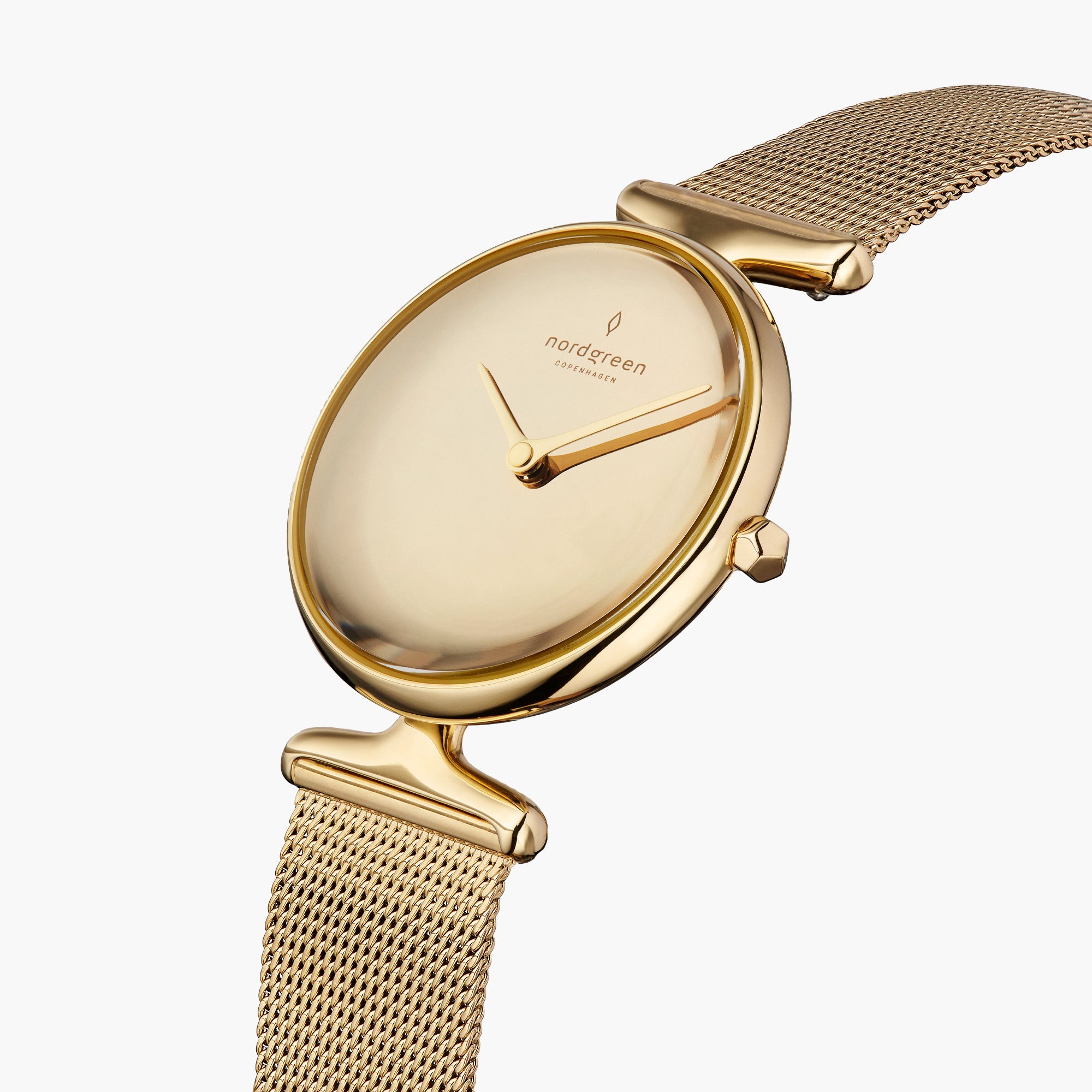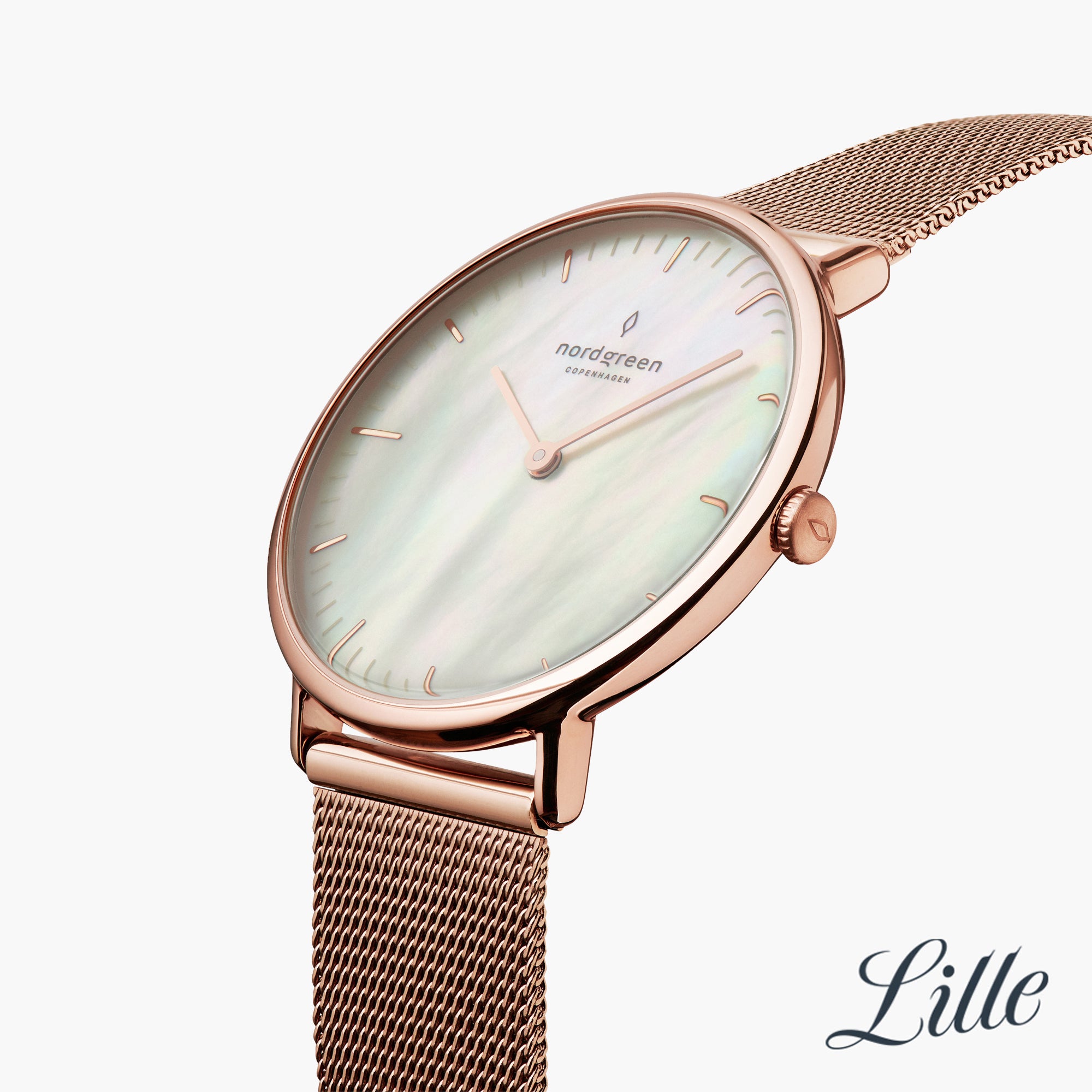 Heutzutage ist es für Damen schwer, eine schlichte, unauffällige Uhr zu entdecken. Ganz nach dem Motto "Weniger ist mehr" handelt es sich bei Native um einen absoluten Klassiker, der bei vielen Kunden aufgrund des dezenten Designs auf Anklang stößt. Bei dem Modell, das online als Bestseller bezeichnet wird, handelt es sich um eine Uhr mit weißem Zifferblatt und goldenen Armband. Ein Zifferblatt in der Farbe Schwarz ist ebenfalls beliebt. Das Band besteht aus Edelstahl-Mesh und unterstützt den filigranen Stil der Uhr. Das Modell wird auch als "Lille" bezeichnet. Die Größe des Armbands und die des Gehäuses kann beliebig angepasst werden. Das Modell ist häufig ein Teil der Sale-Angebote.