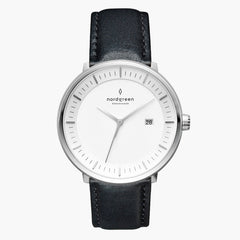 Philosopher Silber 40mm - Schwarz Leder